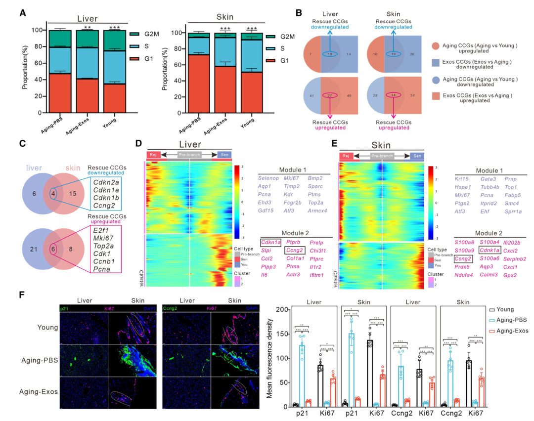 四:人胚胎干细胞来源外泌体(hESC-Exos)处理可重塑衰老小鼠的细胞增殖过程