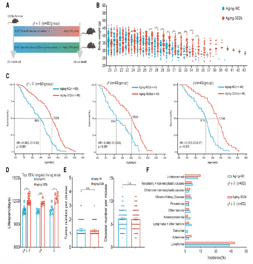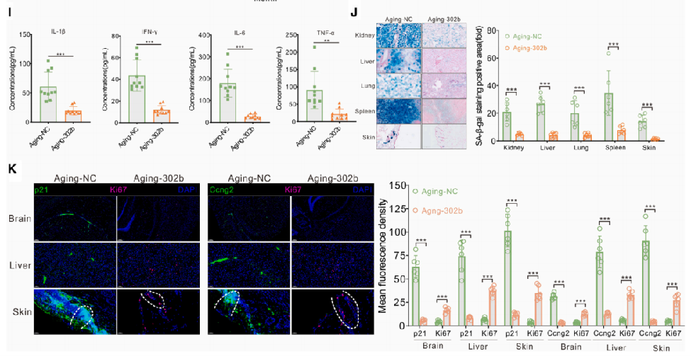 七:长期递送 miR-302b 可延缓衰老进程,且未引发安全问题