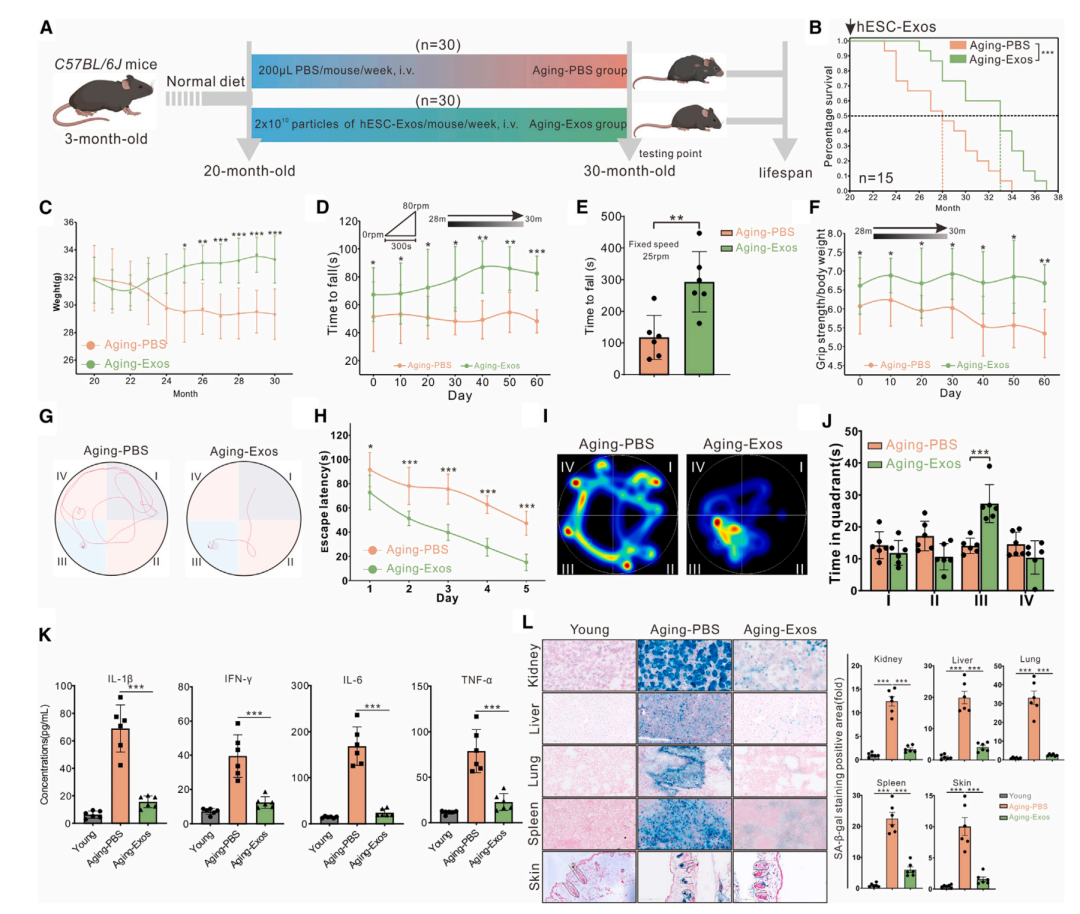 三:人胚胎干细胞来源外泌体(hESC-Exos)处理可使衰老小鼠年轻化