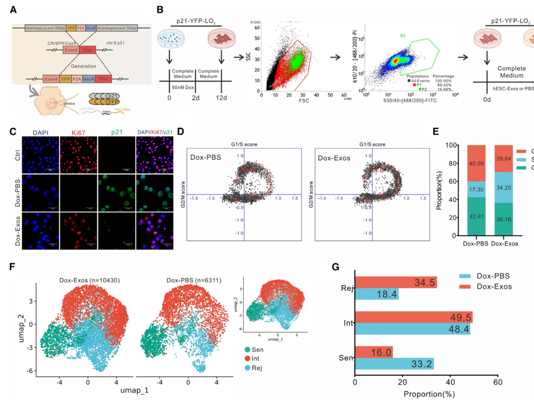 二:人胚胎干细胞来源外泌体(hESC-Exos)在单细胞水平上逆转了衰老细胞(SnCs)的增殖停滞